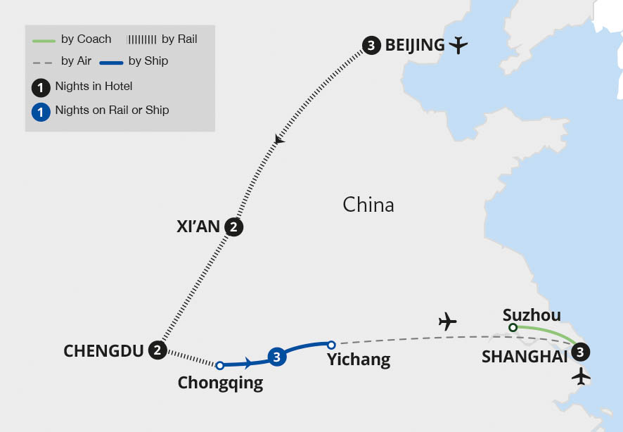 Uncover an incredible blend of breathtaking modernism and beautiful imperial history on a tour of China's ancient and modern wonders. Step into history during visits to the iconic Forbidden City, Temple of Heaven and the Great Wall of China while in Beijing. Travelling by high-speed rail, explore ancient Xi'an and its astonishing...