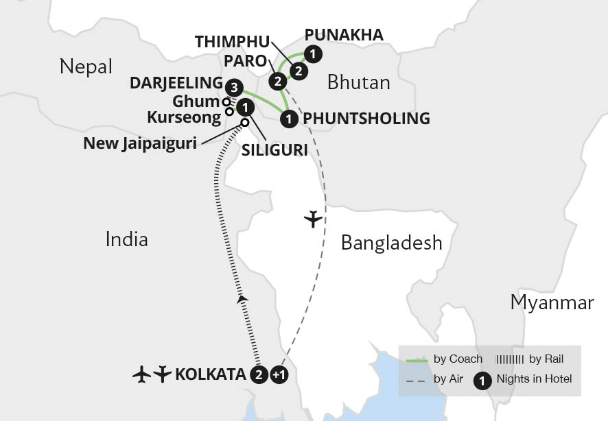 Experience the majesty of the Himalayas on this remarkable holiday that reveals the wonders of northern Bengal and the hidden treasures of Bhutan. Explore colonial Kolkata and embrace the beauty of the world's mightiest mountain range, travelling on the charming 'Toy Train' to the famed tea region of Darjeeling. Witness sunrise over the ...