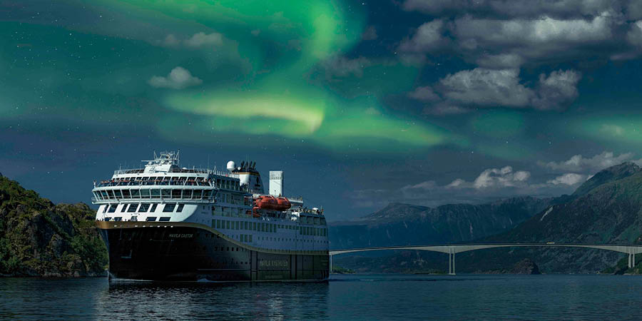 • Sail into the spectacular Arctic region on an environmentally friendly Havila cruise ship