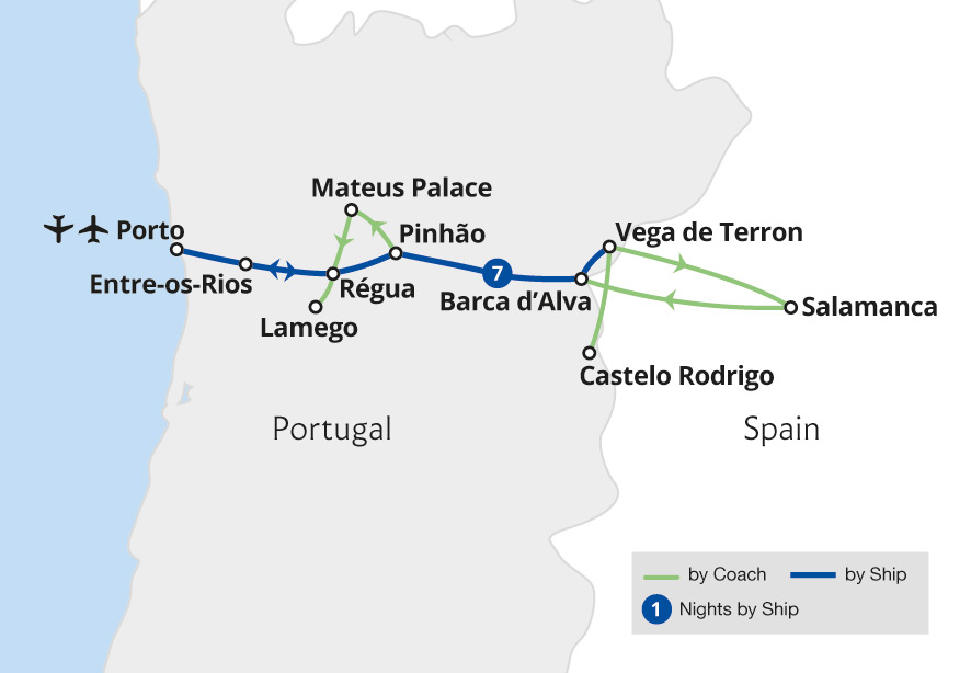 “A short cruise up and down the Douro, stopping at various points and including interesting visits to Porto, Salamanca, Almego and Guimaraes