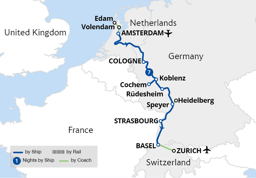 Fly to Amsterdam to experience the breathtaking beauty of the Netherlands to Switzerland on a luxury river cruise. Sail through four countries, admiring stunning forested valleys, charming half-timbered towns and historic cities lining this incredible river's picturesque banks before returning by air from Zürich. Marvel at the spectacular...