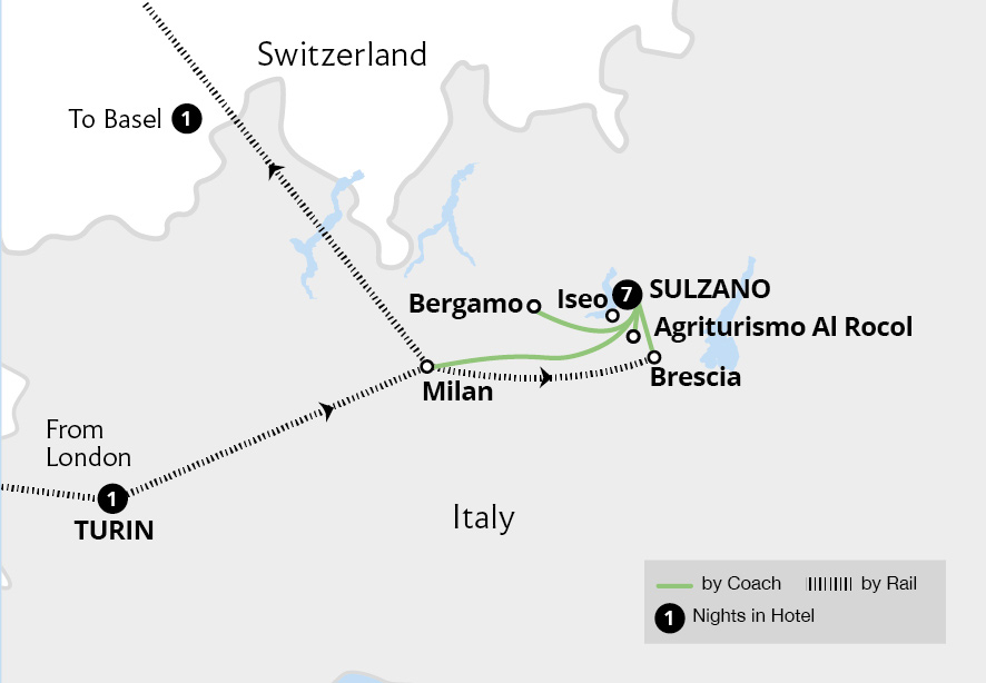 Dappled with charming medieval villages, undiscovered Lake Iseo boasts world-class food and drink. Taste the exquisite flavours of the region during a sumptuous dinner and wine-tasting of Italy's acclaimed sparkling wine at a Franciacorta winery and while sampling seasonal produce during a scenic journey aboard the 'Train of Flavours'. ...