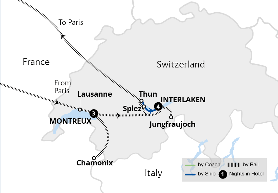 From glittering Montreux to mountainous Interlaken, enjoy an effortless journey on an instantly iconic direct route, passing frozen rivers, icy lakes and picture-perfect winter scenes. Explore Lake Geneva's fairytale Château de Chillon, cross the Alps to Chamonix on the Mont Blanc Express, and travel to Interlaken on the cutting-edge GoldenPass...