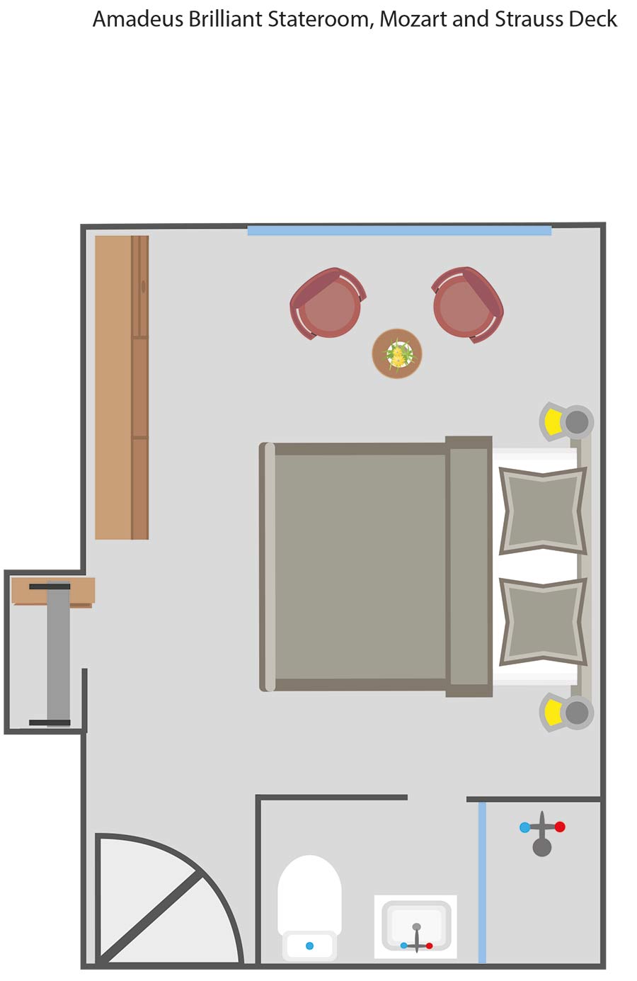 These en-suite cabins are stylish and impressively spacious at 17.5 squre metres, with a panoramic window balcony, walk-in wardrobe and seating area.