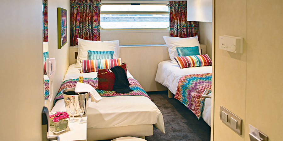 Renovated in 2013, this modern river barge has capacity for just 22 passengers, allowing for an intimate cruise experience through the French countryside. Jeanine's expert crew of five is dedicated to serving and inspiring all guests traveling on board. There are only 11 cabins, all of which are comfortable two-berths. The ship has air-conditioning throughout but there are independent controls in each room as well as a window, a private en-suite bathroom with a shower and plenty of storage space for your luggage. The modern design includes a television, telephone, radio and safe. There's also a Jacuzzi on board, a sun deck with loungers, and a lounge with a bar.