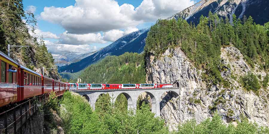 Most of the route is a UNESCO World Heritage site and the journey includes 196 bridges and 55 tunnels at a peak altitude of 7,392 feet.