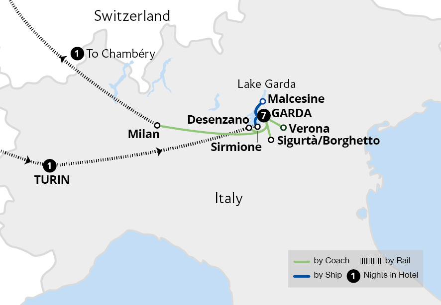 Your holiday begins by meeting the Tour Manager at London St Pancras, before we board the Eurostar to Paris. From the French capital, we continue by rail across France, passing through the Alps enroute to Turin.